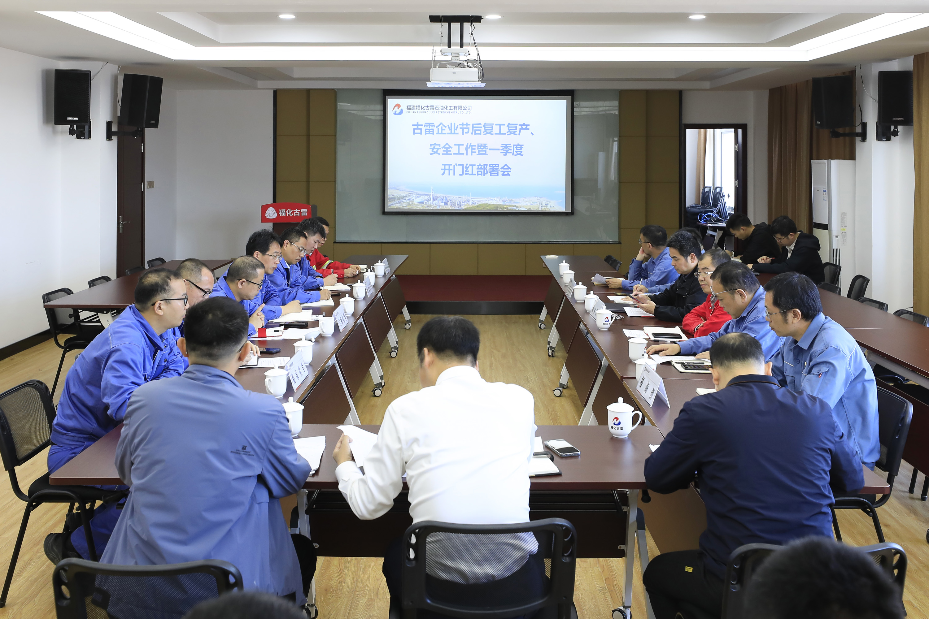 万物发春华,奋进正当时。为进一步贯彻落实集团关于节后复工复产、安全工作暨一季度开门红工作要求,福化古雷于2月20日在杜浔办公楼召开专题部署会,各企业主要负责人、安全分管领导参加会议。