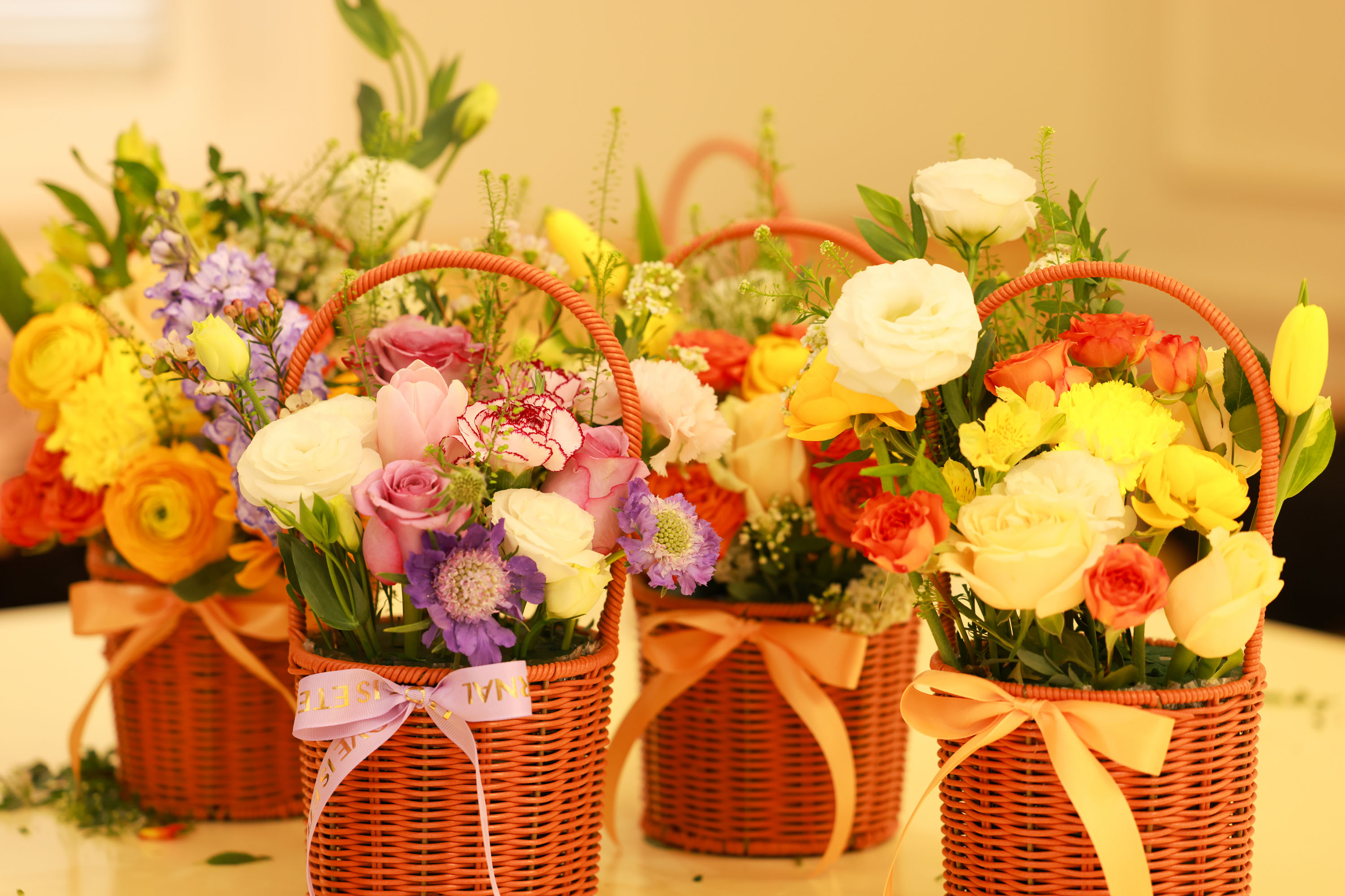 来到氛围感满满的插花创作现场,鲜花、花篮、花艺工具一应俱全,女职工们化身花艺师,修枝剪叶、搭配色彩,认真打造独具匠心的花艺作品,让鲜花在指尖绽放灵动生机,传递着对幸福生活的热爱与期许。